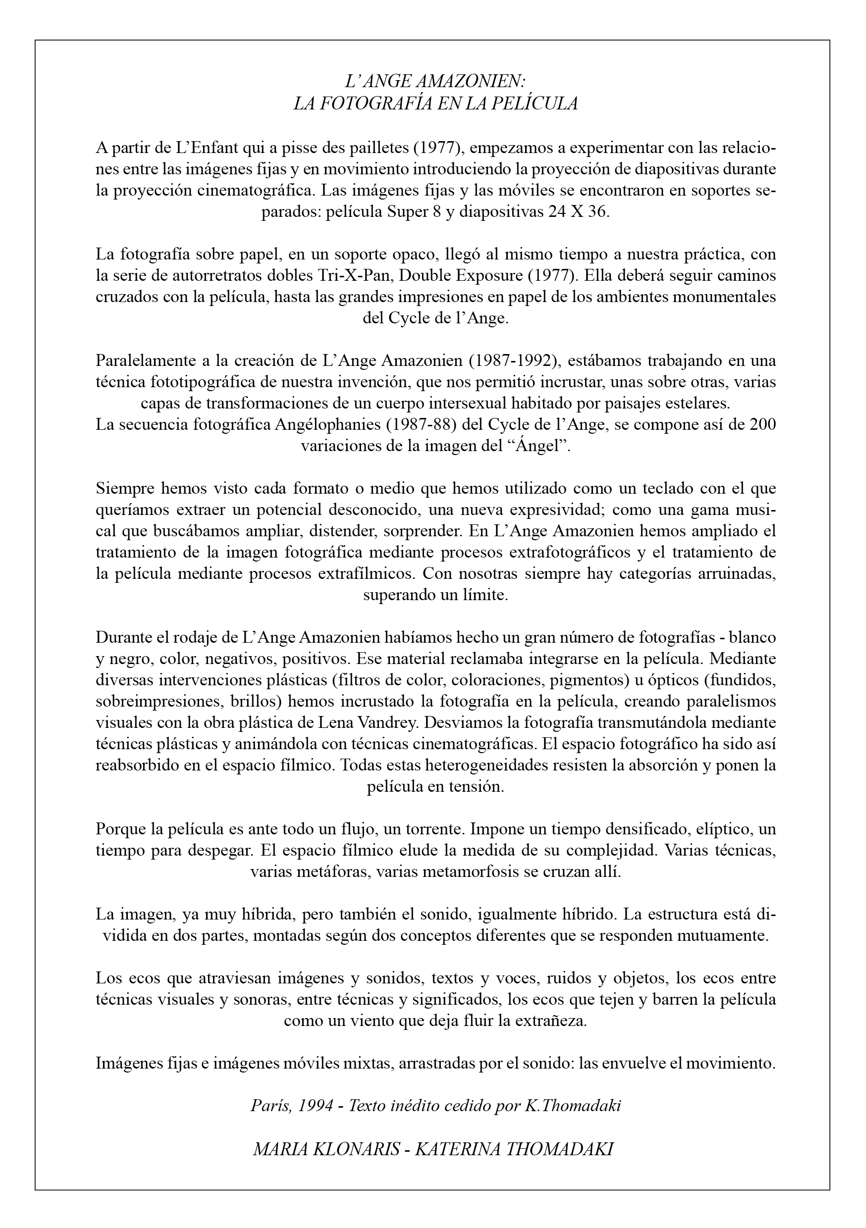 Comisariado, investigación y redacción de hoja de sala de la proyección